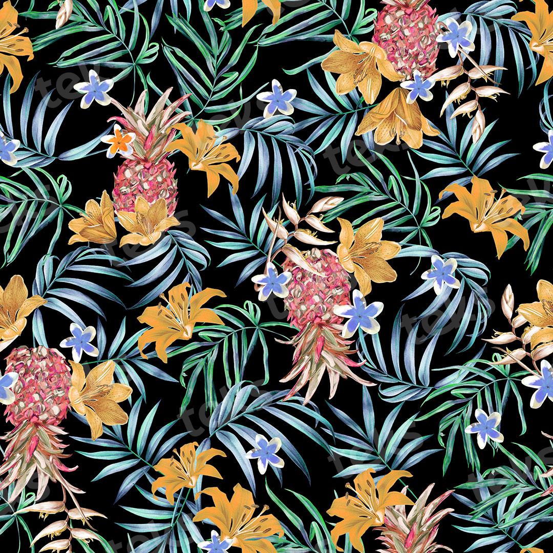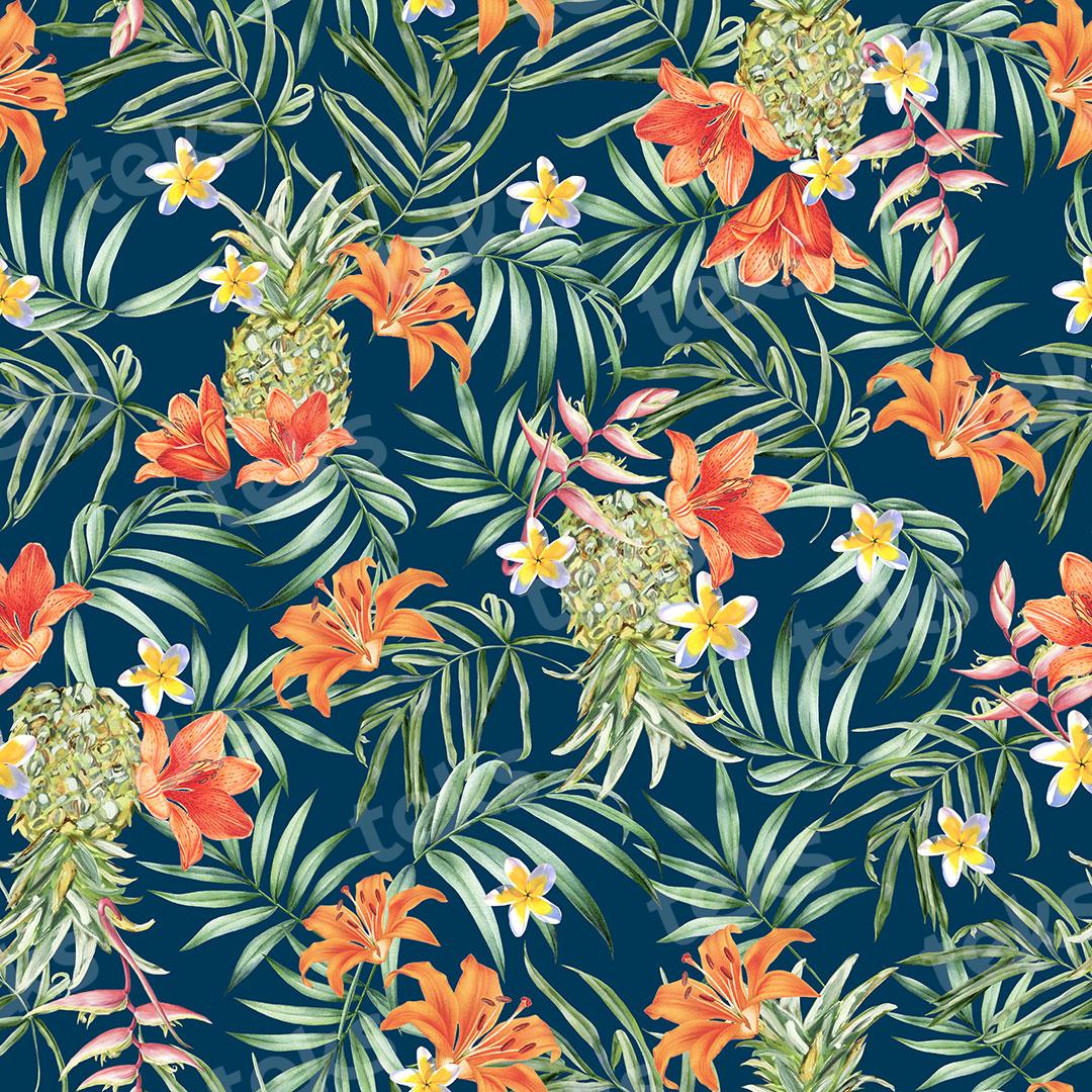 _tropical_frutas_flores tropicales_piñas_follaje_hojas tropicales_hojas de palmera