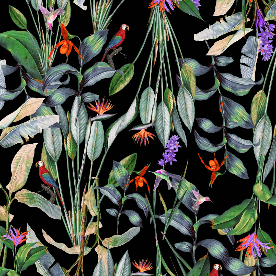 _follaje botanico hojas jardin aves ramas pajaros arbol frutal hojas realistas clásico tapiz fauna