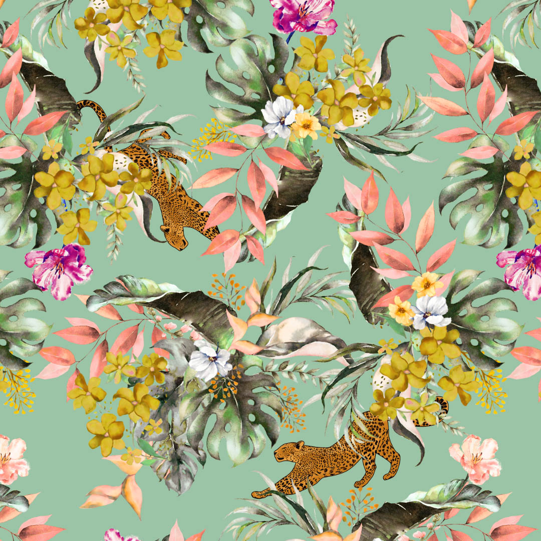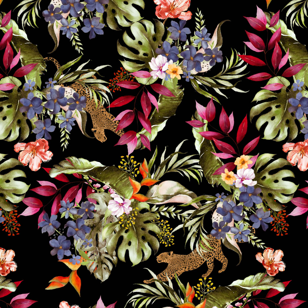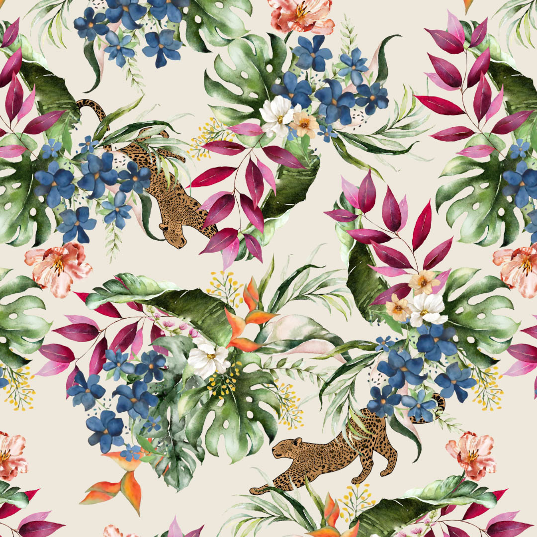 fauna follaje animales felinos leopardos flores ramilletes selva hojas floral botanico clásico mix and match jardin