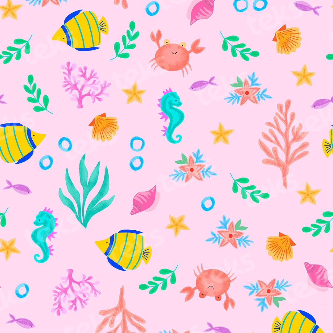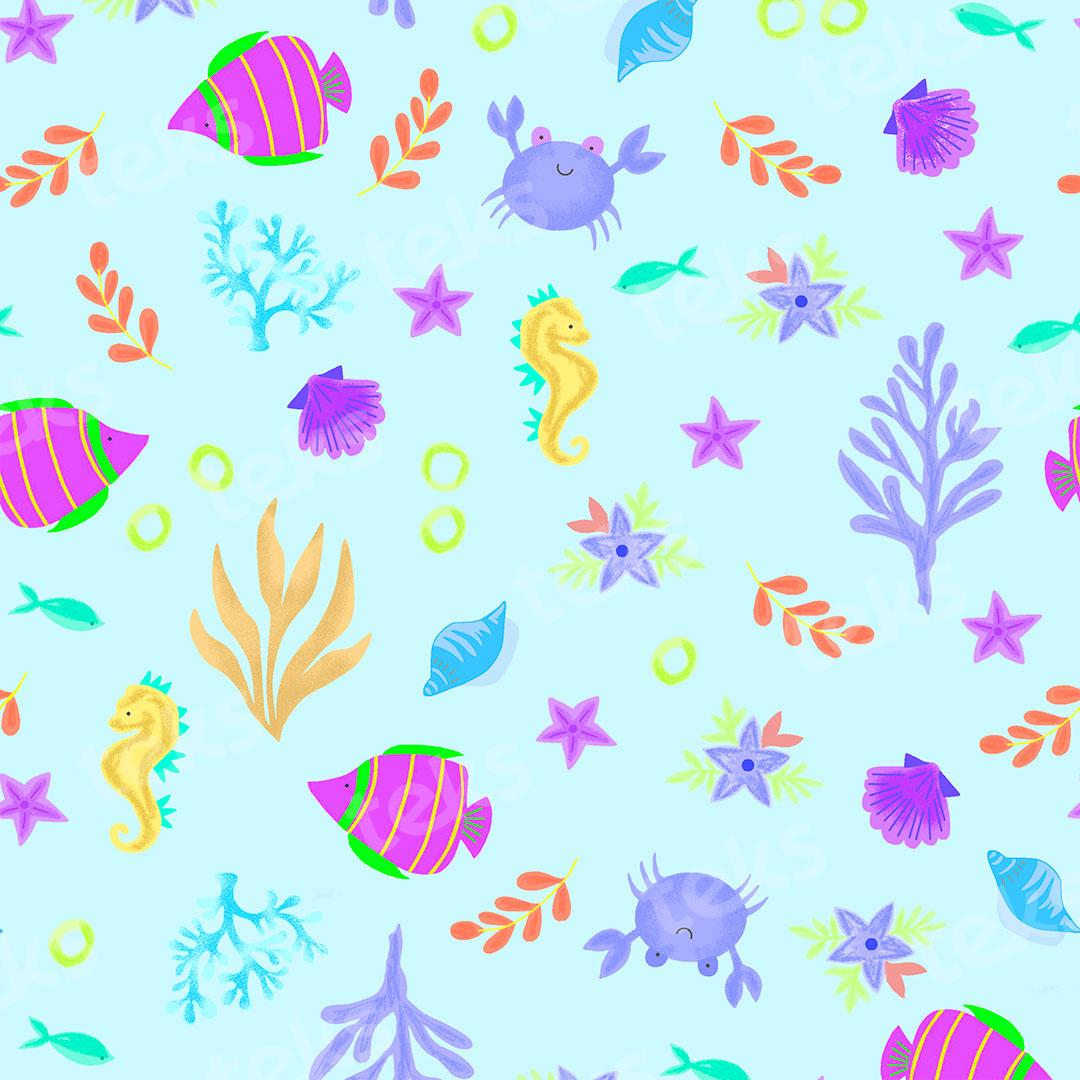 _infantil_conversacional_caballitos de mar_flores graficas_algas_cangrejos_peces_conchas de mar