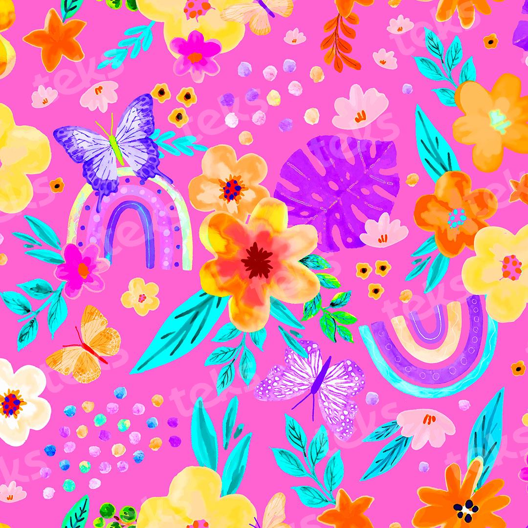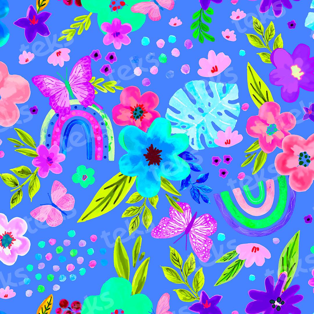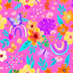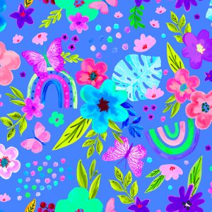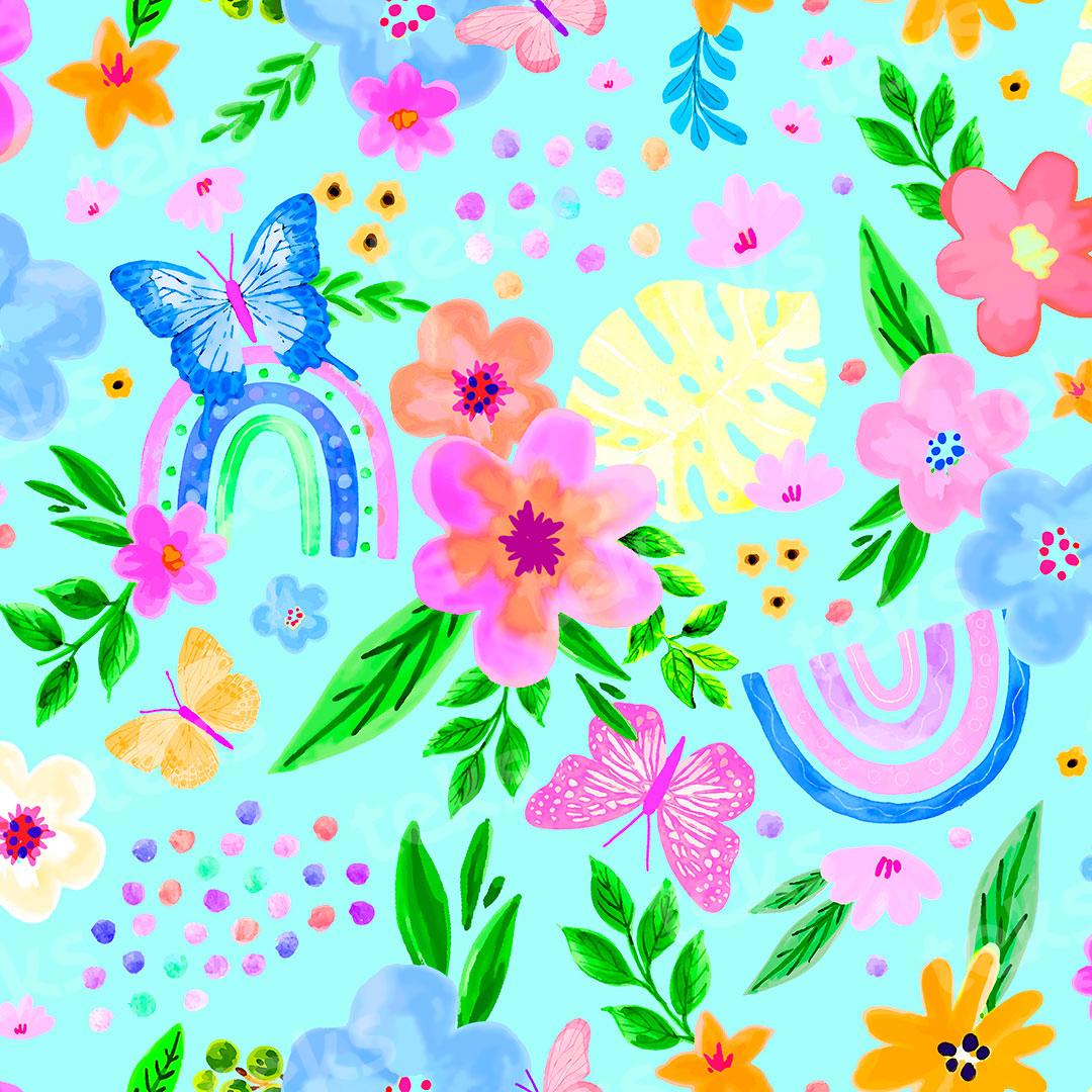 Infantil naturaleza hojas acuarela flores arcoiris mariposas