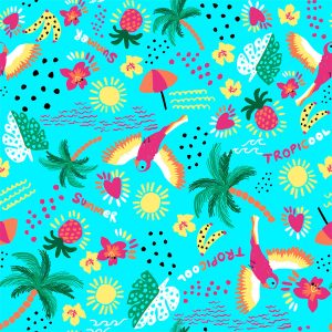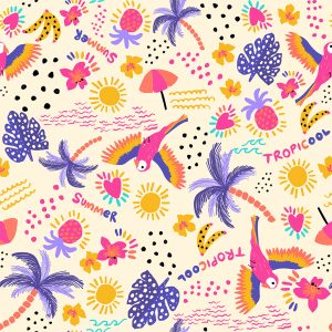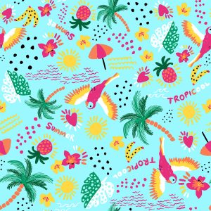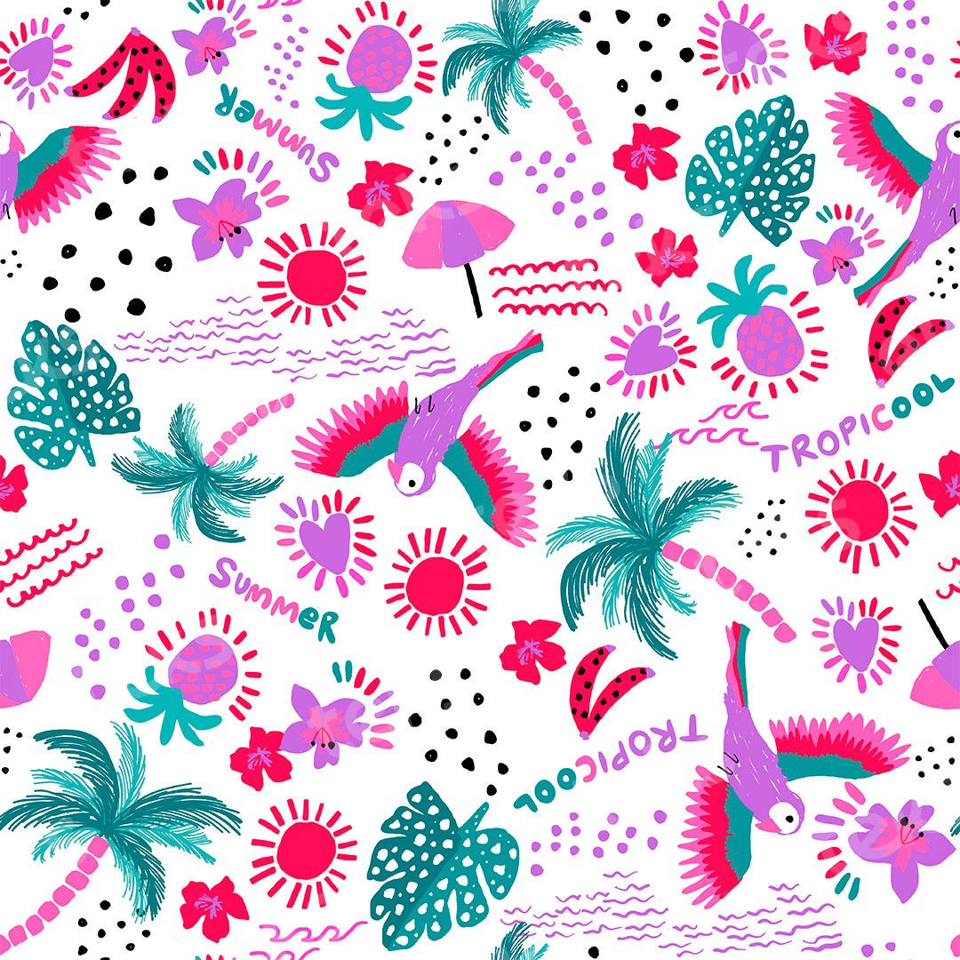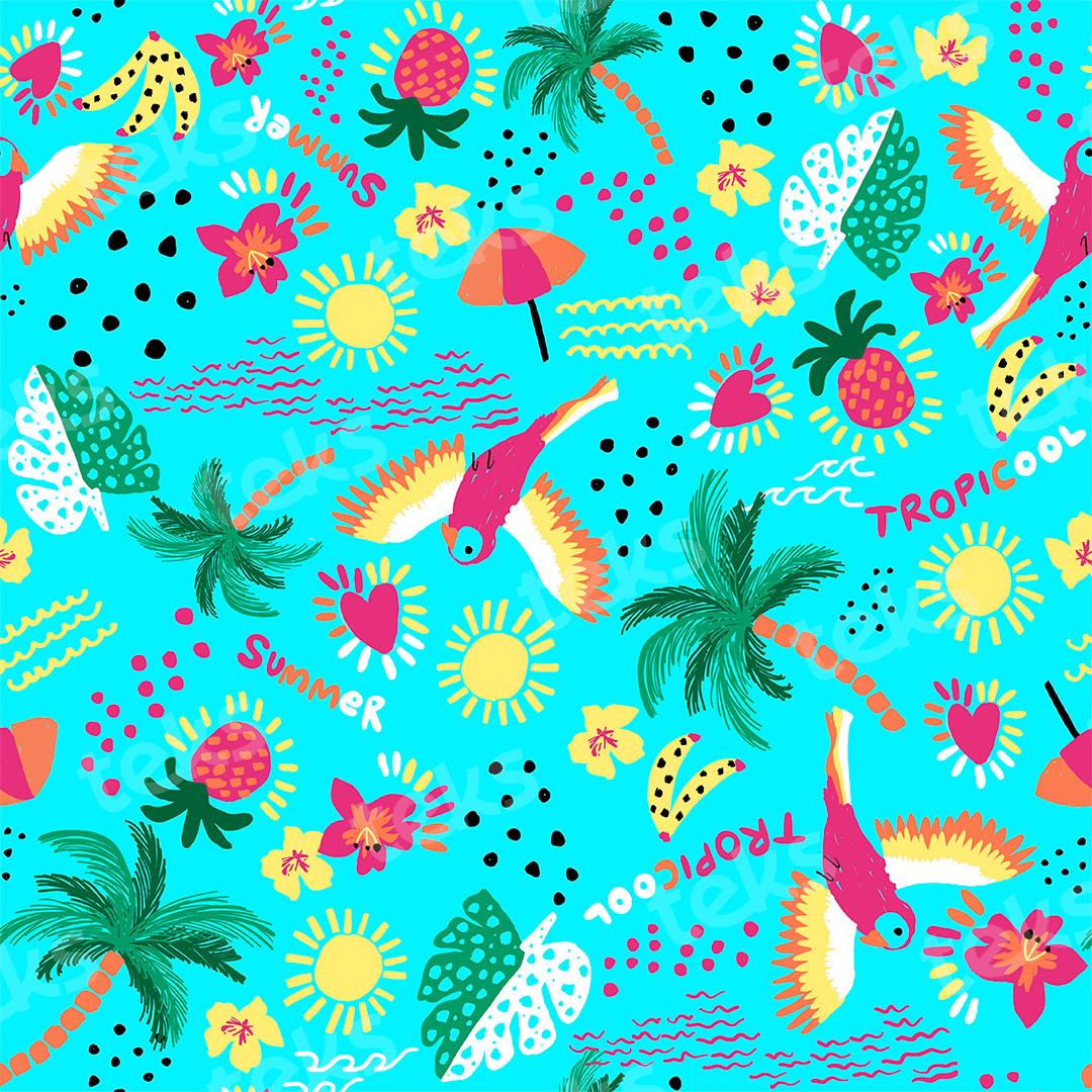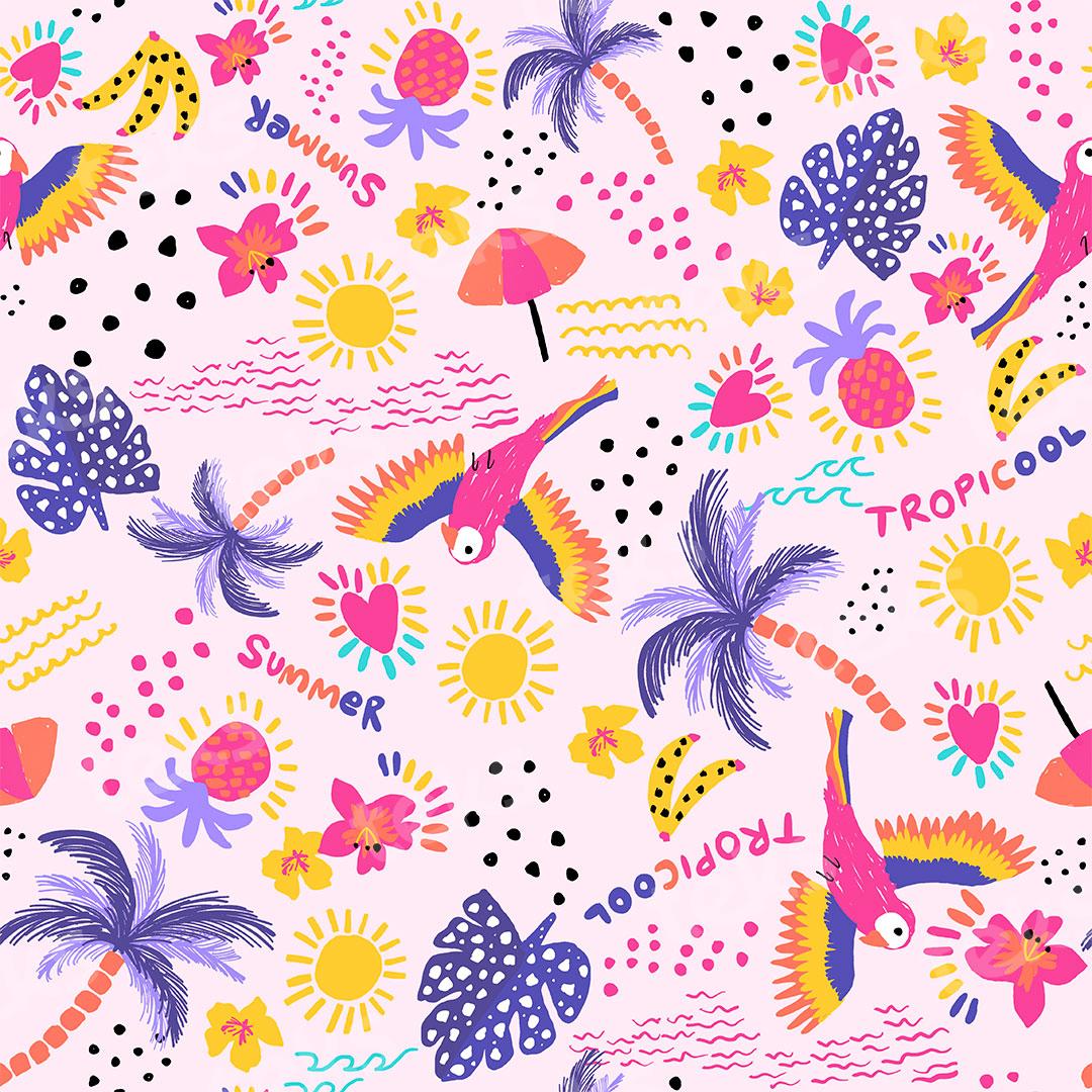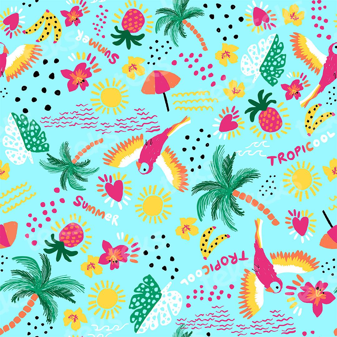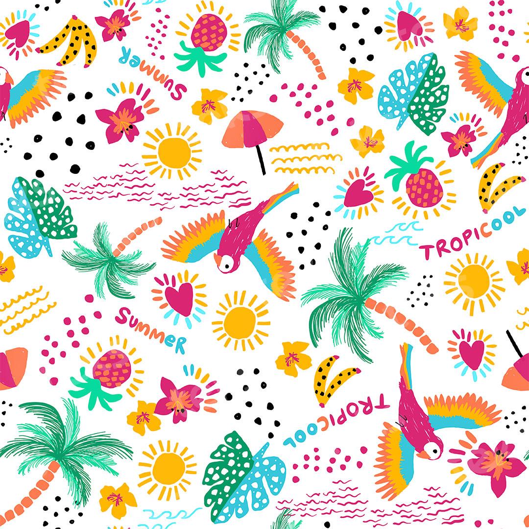 tropical palmeras sol guacamaya infantil playa corazones teen flores tropicales summer veraniego vector