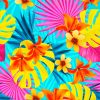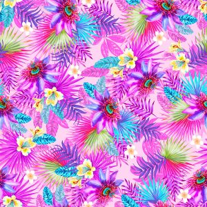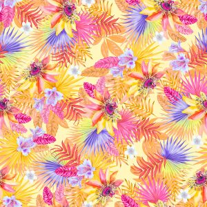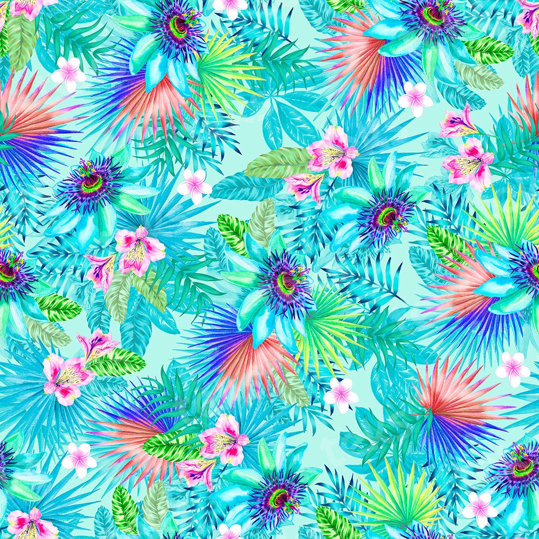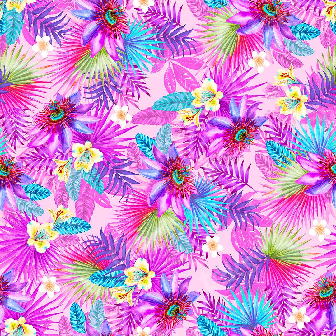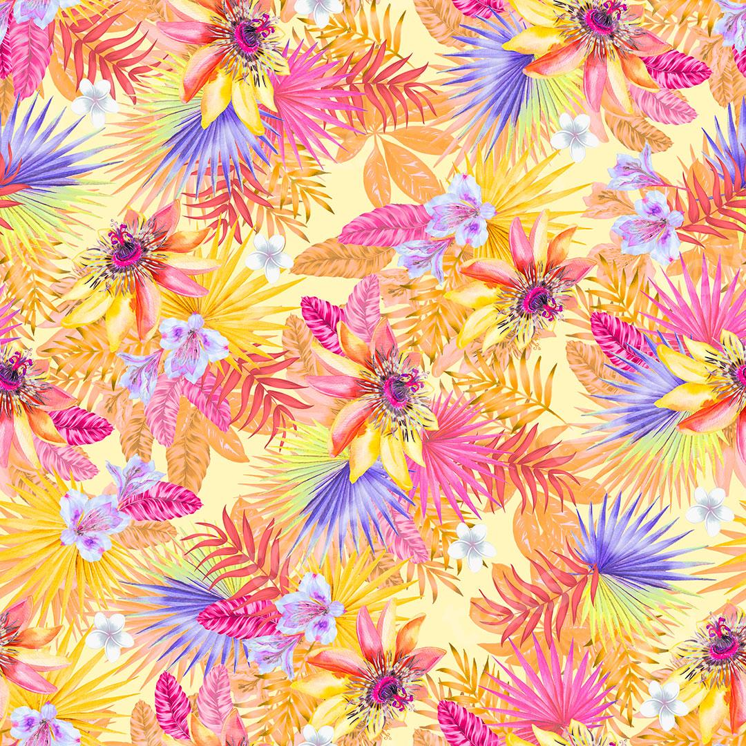 tropical flores playa veraniego follaje diversidad de colores calido brillante ilustrado