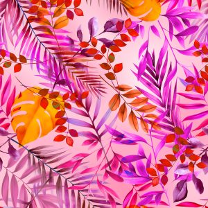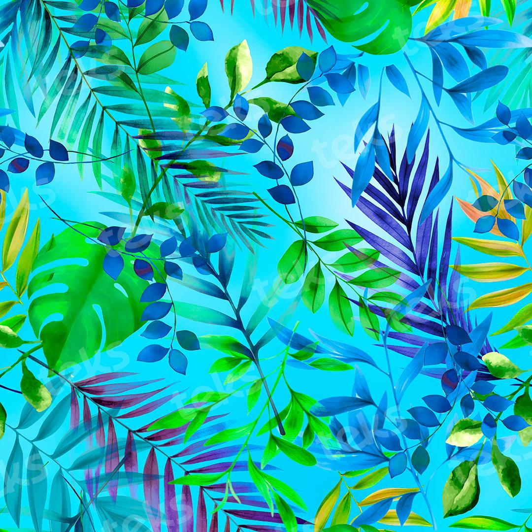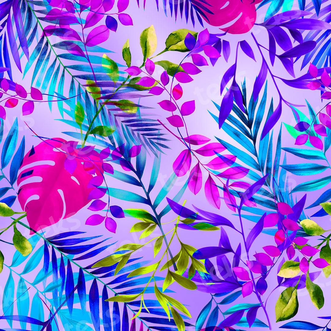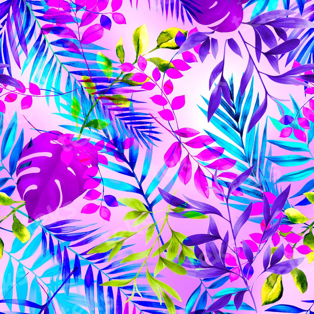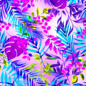 tropical hojas palmas verano playa botanico calidez brillante ilustracion digital diversidad neon degrade efectos palmeras
