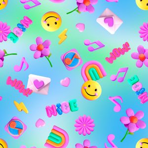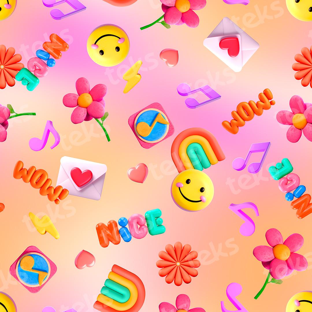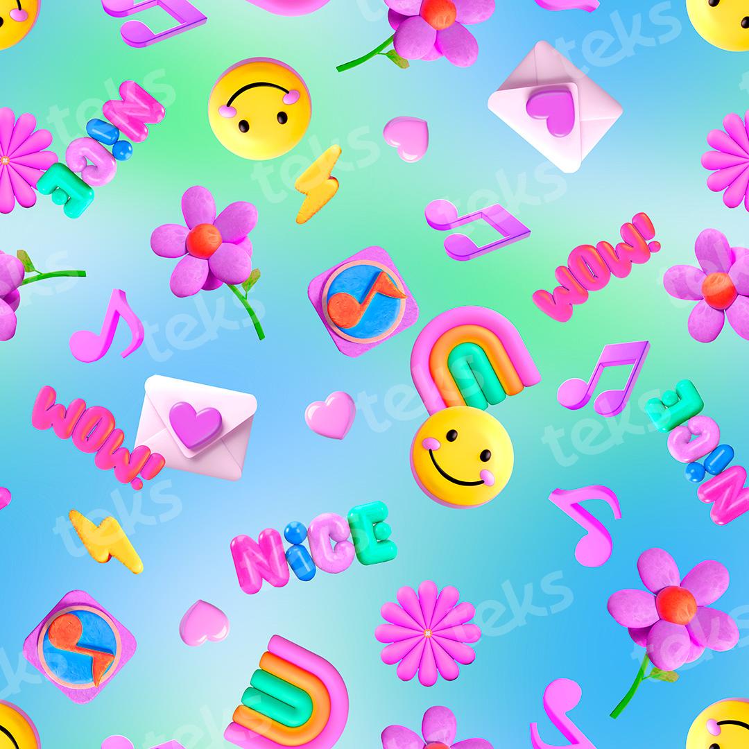 Infantil flores sonrisa notas musicales carta rayo corazones nice wow arcoiris pasteles volumen