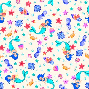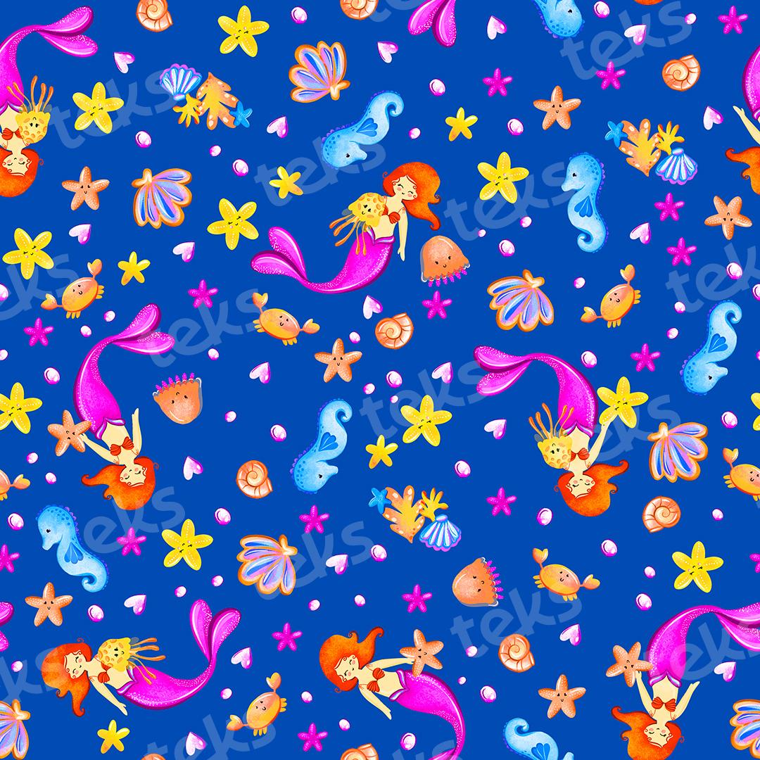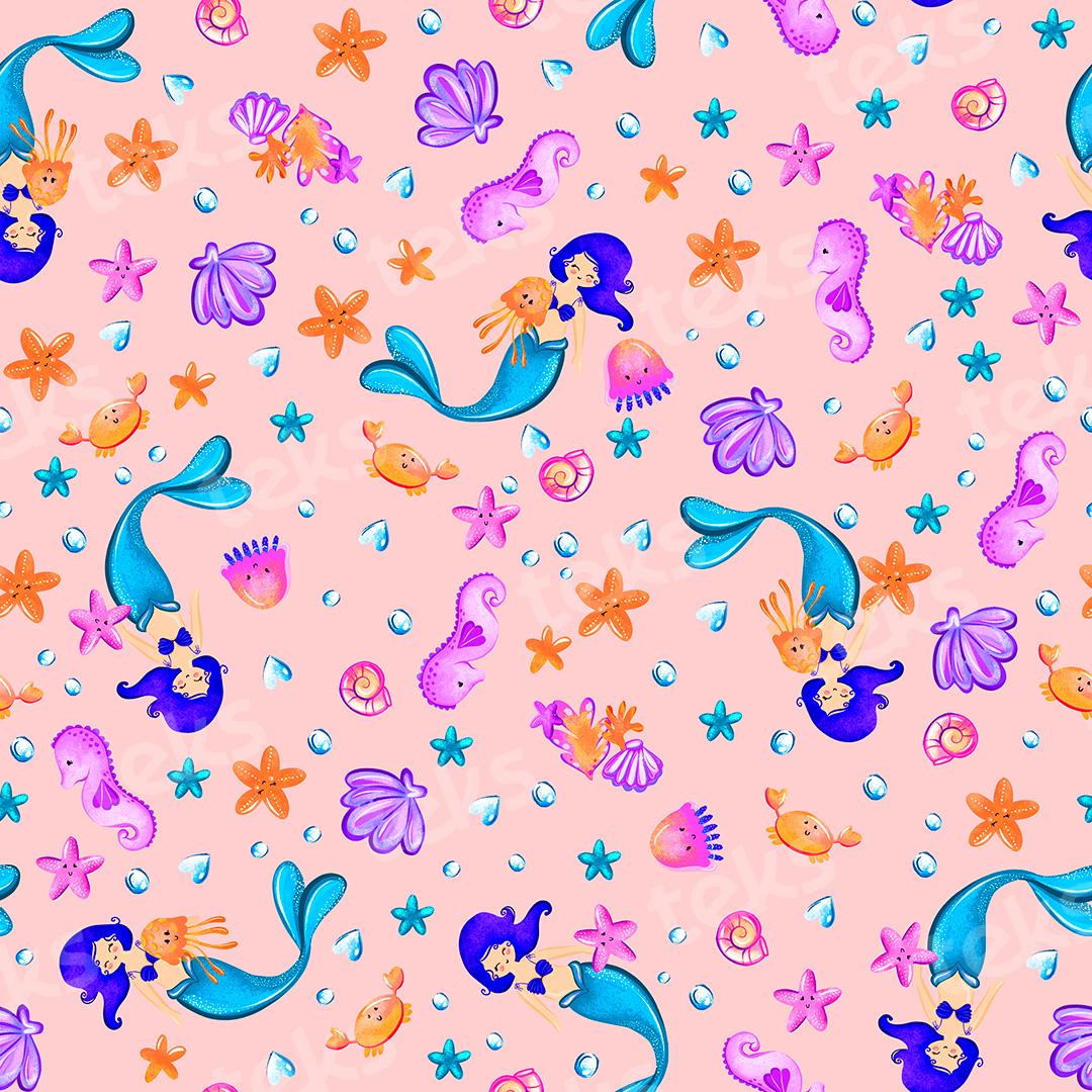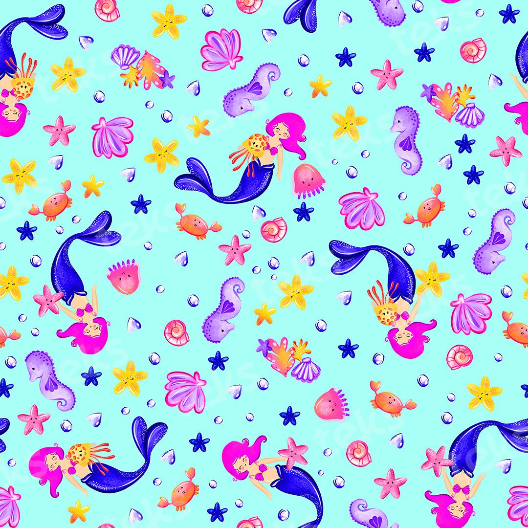 Infantil mar sirenas estrellas cabillito de mar cangrejos corales burbujas medusas oceano crayon ilustrado