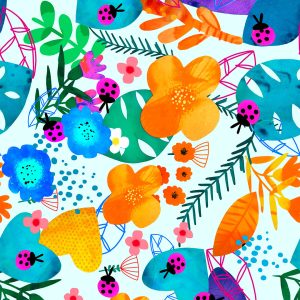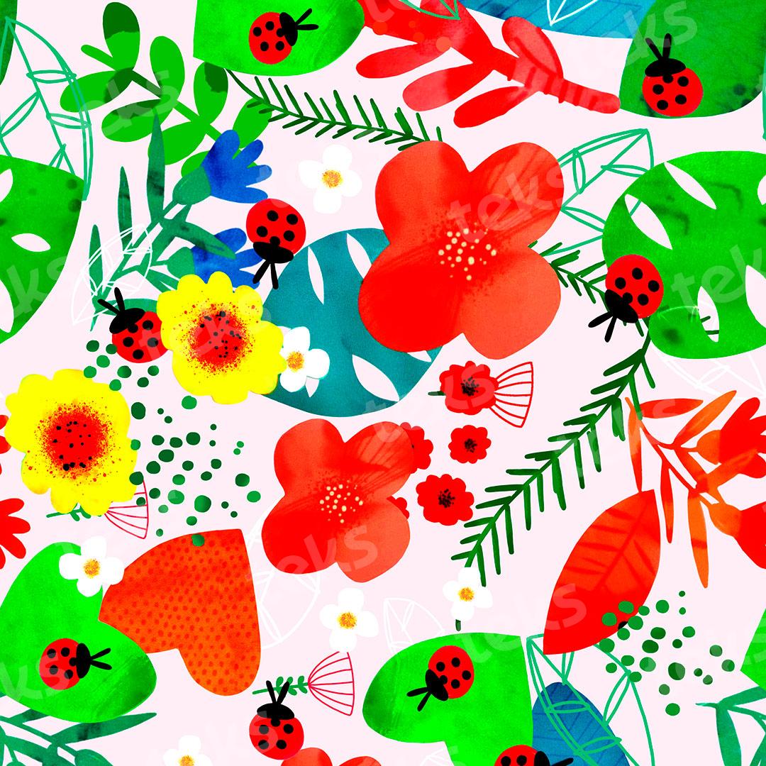fauna flores hojas mariquita insectos follaje jardin biodiversidad hojas ilustradas acualera