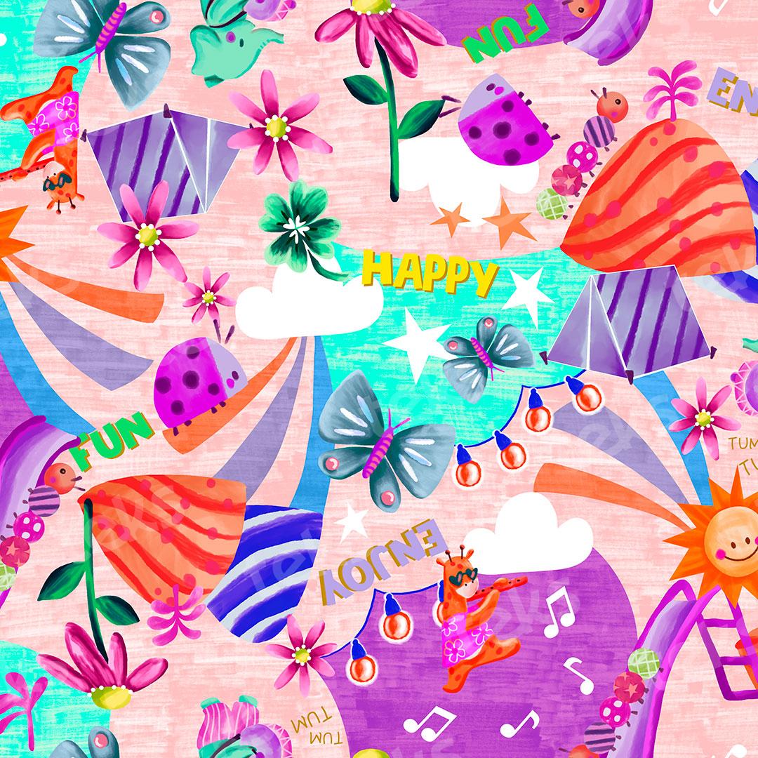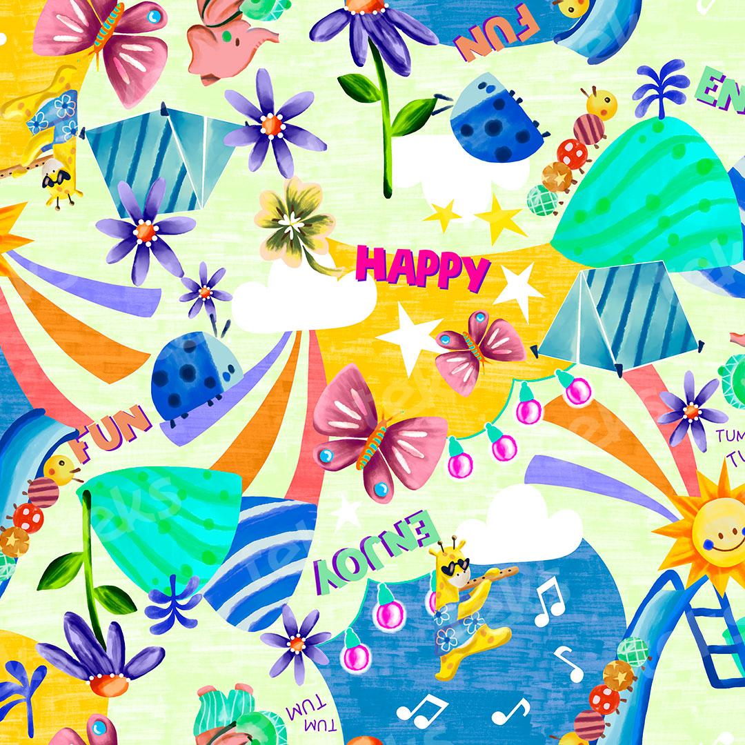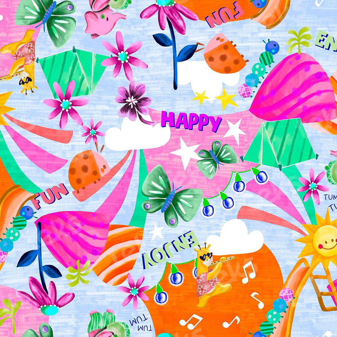Infantil conversacional mariposas circo sol flores floral happy enjoy jirafa rodadero tobogan elefante circus luces